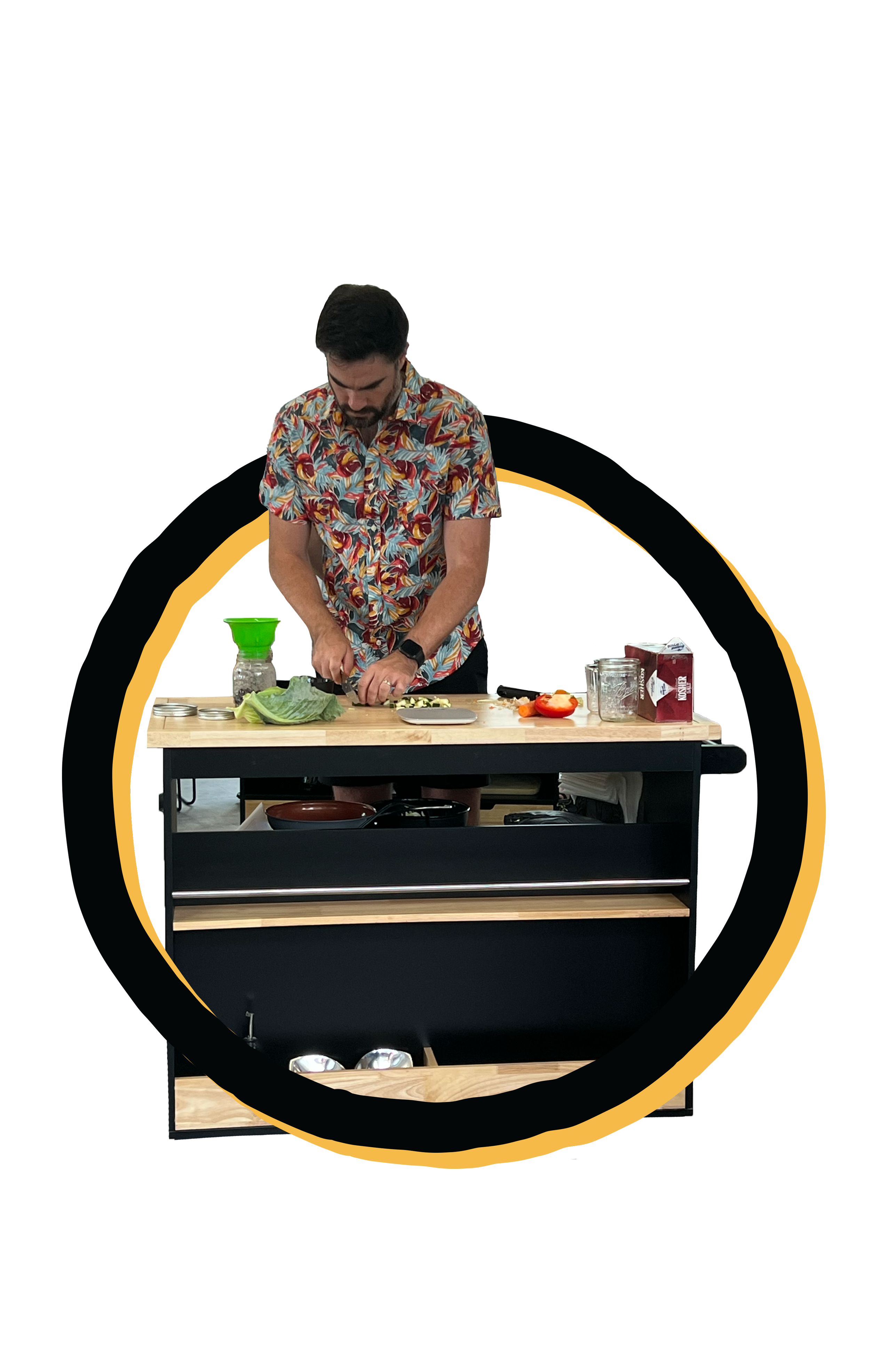 Our space is equipped with a teaching kitchen that can accommodate group workshops. This allows our instructors to hold classes on nutrition and preparing healthy well balanced meals. This kitchen also serves as a space to hold private events or host your next cooking class.